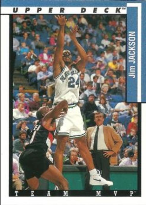 The Jim Jackson 1993 Upper Deck #TM6 Team MVP card is 1 of 5 Jim Jackson's card variations in the 1993 Upper Deck set being tracked by Sports Card Investor, including #24 Base, #477 Base, #30 Future Heroes, and #LT15 Locker Talk.