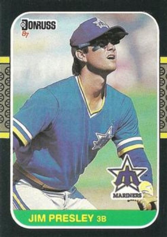 The Jim Presley 1987 Donruss #120 Base card is 1 of 2 Jim Presley's card variations in the 1987 Donruss set being tracked by Sports Card Investor, including Base (Diamond Kings).