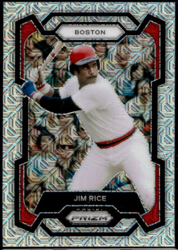 The Jim Rice 2024 Prizm #242 Mojo /25 card is 1 of 48 Jim Rice's card variations in the 2024 Prizm set being tracked by Sports Card Investor, including Base, Blue Ice, Green, Green Ice, and Pink Ice.