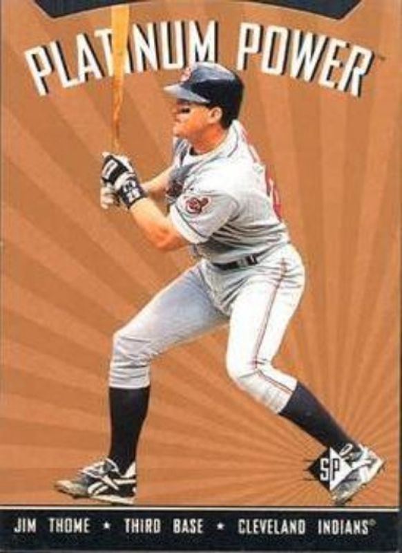 The Jim Thome 1995 SP #PP19 Platinum Power card is 1 of 3 Jim Thome's card variations in the 1995 SP set being tracked by Sports Card Investor, including Base, and Superbafoil.
