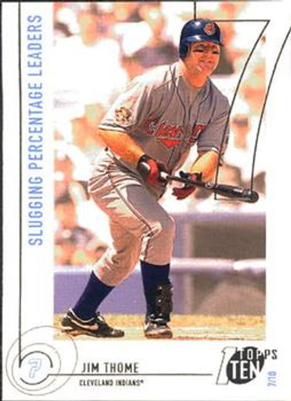 The Jim Thome 2002 Topps Ten #68 Base card is 1 of 5 Jim Thome's card variations in the 2002 Topps Ten set being tracked by Sports Card Investor, including #37 Base, #37 Die-Cut, #68 Die-Cut, and #TTR-JT Relics.