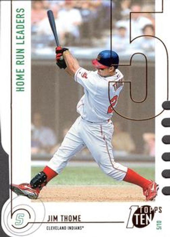 The Jim Thome 2002 Topps Ten #37 Die-Cut card is 1 of 5 Jim Thome's card variations in the 2002 Topps Ten set being tracked by Sports Card Investor, including #37 Base, #68 Base, #68 Die-Cut, and #TTR-JT Relics.