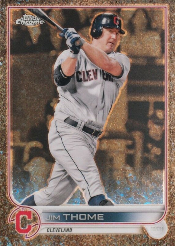 This card is 1 of 13 Jim Thome's card variations in the 2022 Topps Gilded Collection set being tracked by Sports Card Investor, including Base /99, RayWave Gold Etch Refractor /25, Lava Gold Etch Refractor /10, Superfractor /1, and Gold Framed Hall of Famer Autographs /99.
