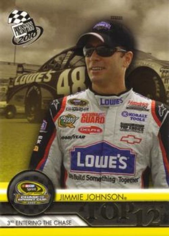 The Jimmie Johnson 2010 Press Pass #111 Gold card is 1 of 56 Jimmie Johnson's card variations in the 2010 Press Pass set being tracked by Sports Card Investor, including #89 Base, #96 Base, #111 Base, #123 Base, and #4 Base.