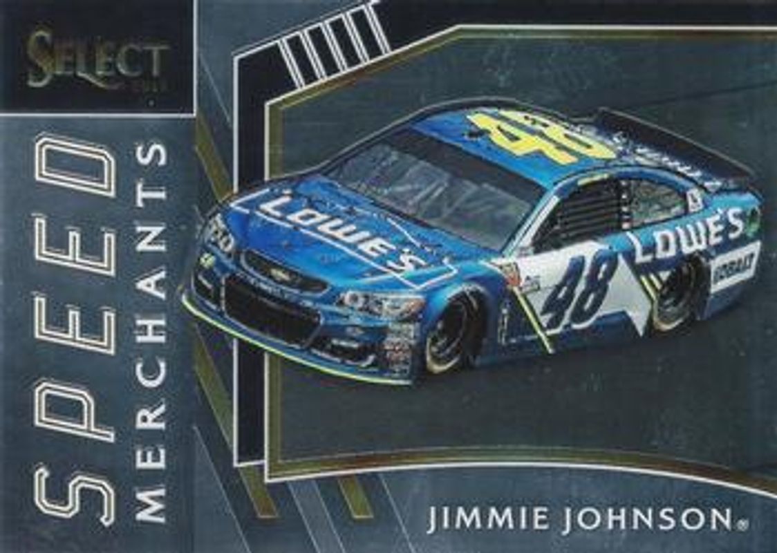 The Jimmie Johnson 2017 Select NASCAR #S11 Speed Merchants card is 1 of 70 Jimmie Johnson's card variations in the 2017 Select NASCAR set being tracked by Sports Card Investor, including #2 Base, #117 Base, #1 Base, #1 Purple Pulsar, and #2 Purple Pulsar.