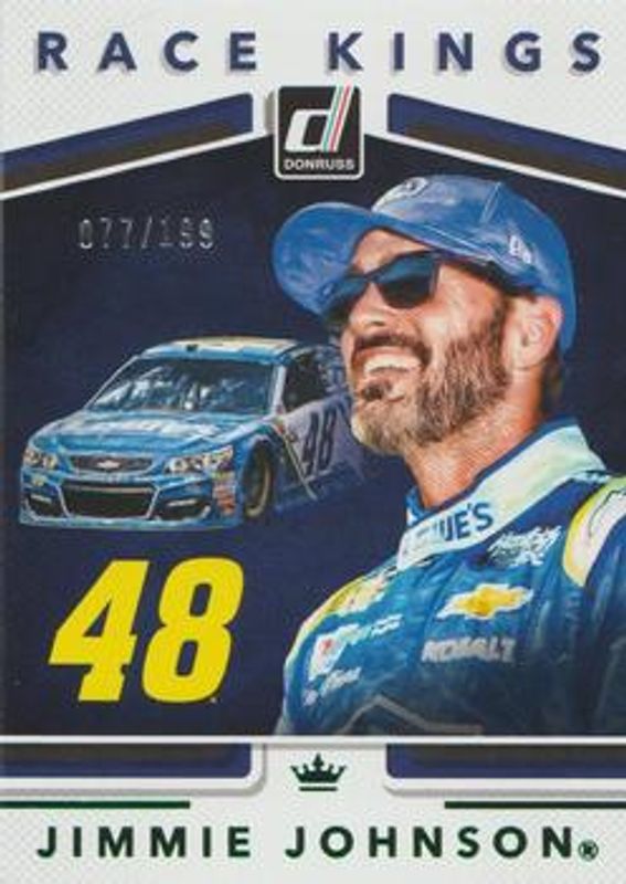 The Jimmie Johnson 2018 Donruss NASCAR #24 Green Foil /199 card is 1 of 90 Jimmie Johnson's card variations in the 2018 Donruss NASCAR set being tracked by Sports Card Investor, including #82 Base, #51b Base, #141b Base, #24 Base, and #51a Base.
