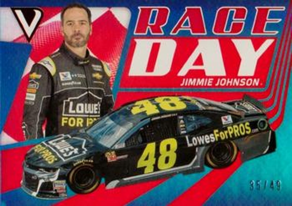 The Jimmie Johnson 2018 Victory Lane NASCAR #RD1 Race Day Red /49 card is 1 of 196 Jimmie Johnson's card variations in the 2018 Victory Lane NASCAR set being tracked by Sports Card Investor, including #25 Base, #99 Base, #92 Base, #91 Base, and #85 Base.