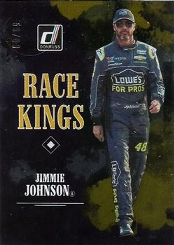The Jimmie Johnson 2019 Donruss NASCAR #1 Gold Press Proof /99 card is 1 of 110 Jimmie Johnson's card variations in the 2019 Donruss NASCAR set being tracked by Sports Card Investor, including #16 Base, #1 Base, #106b Silver, #106a Silver, and #86 Silver.