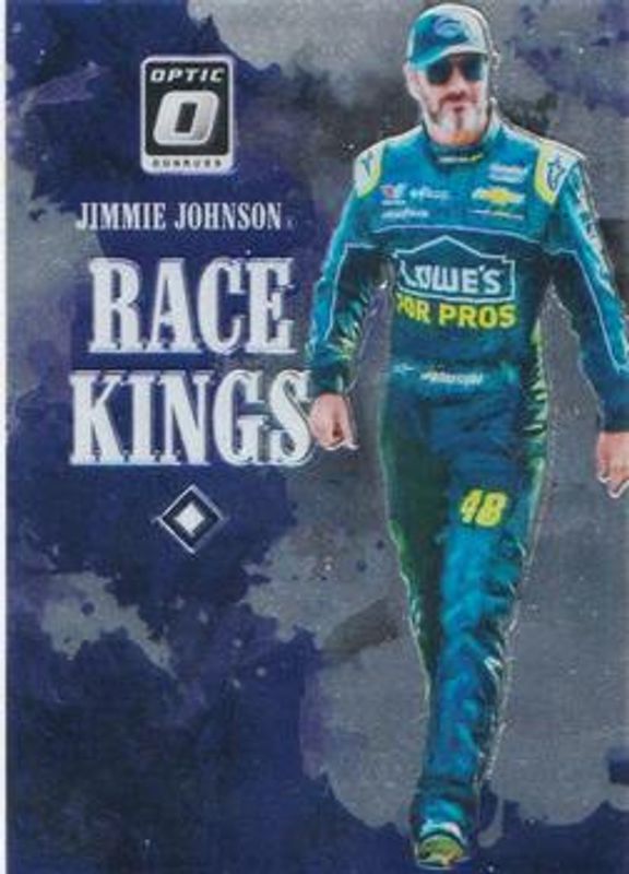 The Jimmie Johnson 2019 Donruss NASCAR #2 Optic card is 1 of 110 Jimmie Johnson's card variations in the 2019 Donruss NASCAR set being tracked by Sports Card Investor, including #16 Base, #1 Base, #106b Silver, #106a Silver, and #86 Silver.