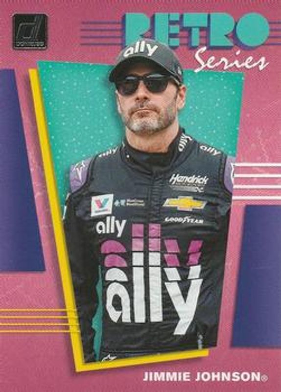 The Jimmie Johnson 2020 Donruss NASCAR #R3 Retro Series card is 1 of 153 Jimmie Johnson's card variations in the 2020 Donruss NASCAR set being tracked by Sports Card Investor, including #160 Base, #199 Base, #38 Base, #9 Base, and #98 Base.