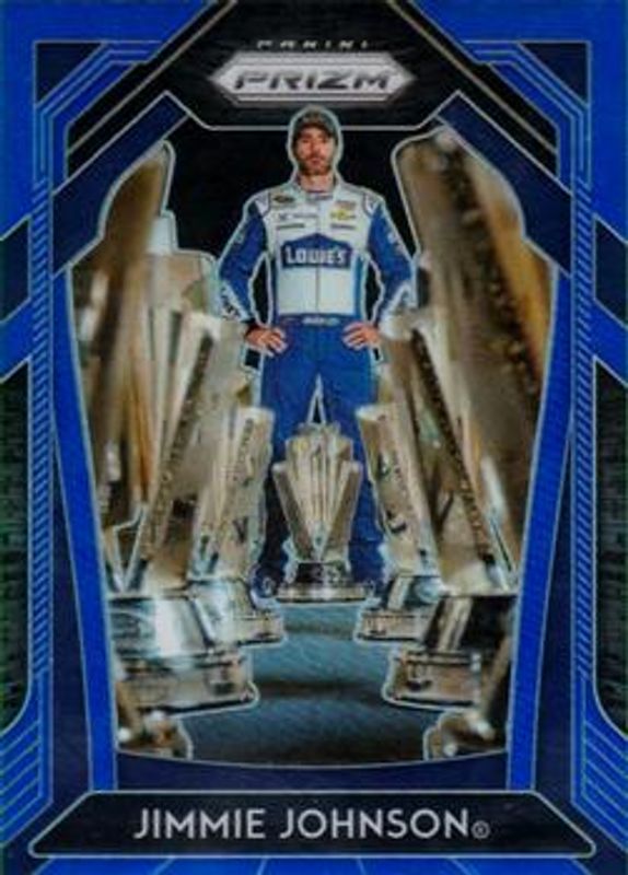 The Jimmie Johnson 2020 Prizm NASCAR #6 Blue card is 1 of 135 Jimmie Johnson's card variations in the 2020 Prizm NASCAR set being tracked by Sports Card Investor, including #79 Base, #6 Base, #21b Base, #21a Base, and #84 Base.