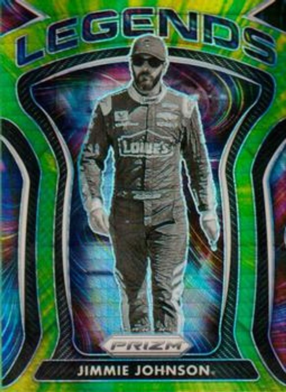 The Jimmie Johnson 2021 Prizm NASCAR #83 Hyper Green & Yellow card is 1 of 72 Jimmie Johnson's card variations in the 2021 Prizm NASCAR set being tracked by Sports Card Investor, including #71 Base, #83 Base, #71 Blue, #83 Blue, and #83 Hyper Blue & Carolina Blue.