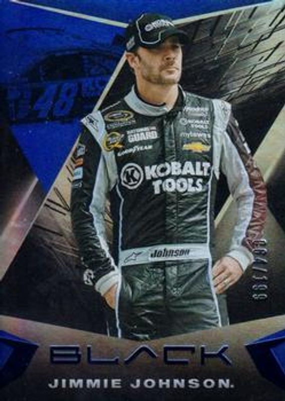 The Jimmie Johnson 2022 Chronicles NASCAR #12 Black Blue /199 card is 1 of 152 Jimmie Johnson's card variations in the 2022 Chronicles NASCAR set being tracked by Sports Card Investor, including Base, Chronicles Blue /199, Chronicles Red /99, Chronicles Purple /25, and Chronicles Gold /10.