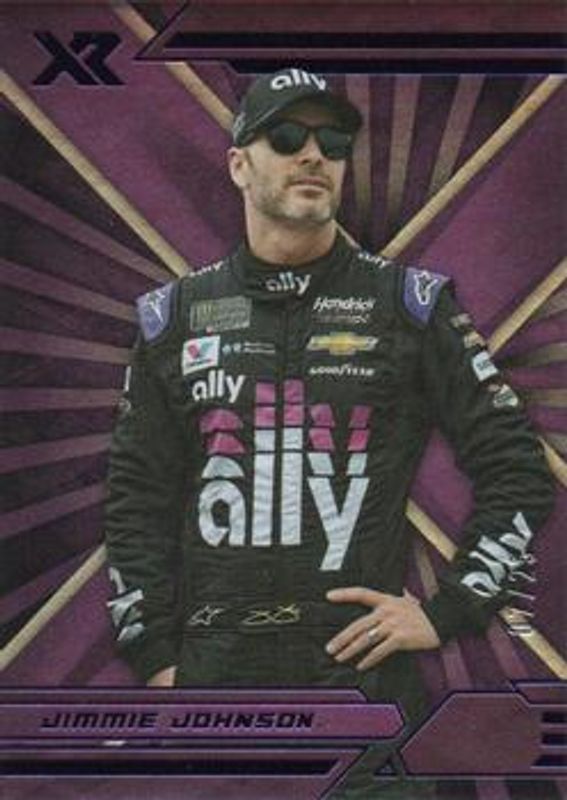 The Jimmie Johnson 2022 Chronicles NASCAR #4 XR Purple /25 card is 1 of 152 Jimmie Johnson's card variations in the 2022 Chronicles NASCAR set being tracked by Sports Card Investor, including Base, Chronicles Blue /199, Chronicles Red /99, Chronicles Purple /25, and Chronicles Gold /10.