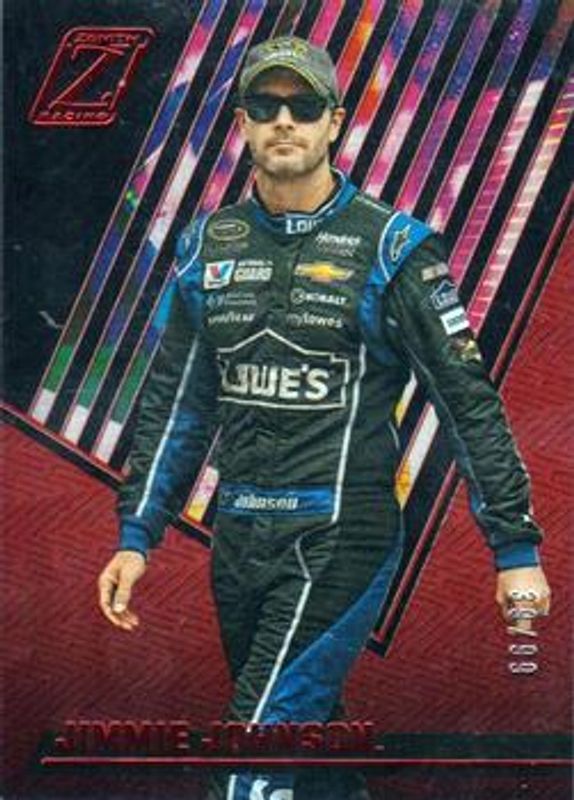 The Jimmie Johnson 2022 Chronicles NASCAR #9 Zenith Red /99 card is 1 of 152 Jimmie Johnson's card variations in the 2022 Chronicles NASCAR set being tracked by Sports Card Investor, including Base, Chronicles Blue /199, Chronicles Red /99, Chronicles Purple /25, and Chronicles Gold /10.