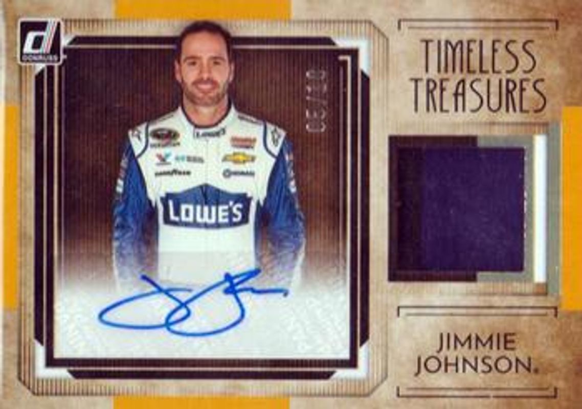 Jimmie Johnson 2022 Donruss NASCAR #TTMS-JJ Timeless Treasures Material Signatures Holo Gold /10 RAW Price Guide