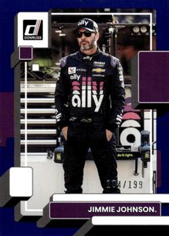 The Jimmie Johnson 2023 Donruss NASCAR #89 Navy Blue /199 card is 1 of 169 Jimmie Johnson's card variations in the 2023 Donruss NASCAR set being tracked by Sports Card Investor, including #89 Base, #174 Base, #20 Base, #34 Base, and #35 Base.