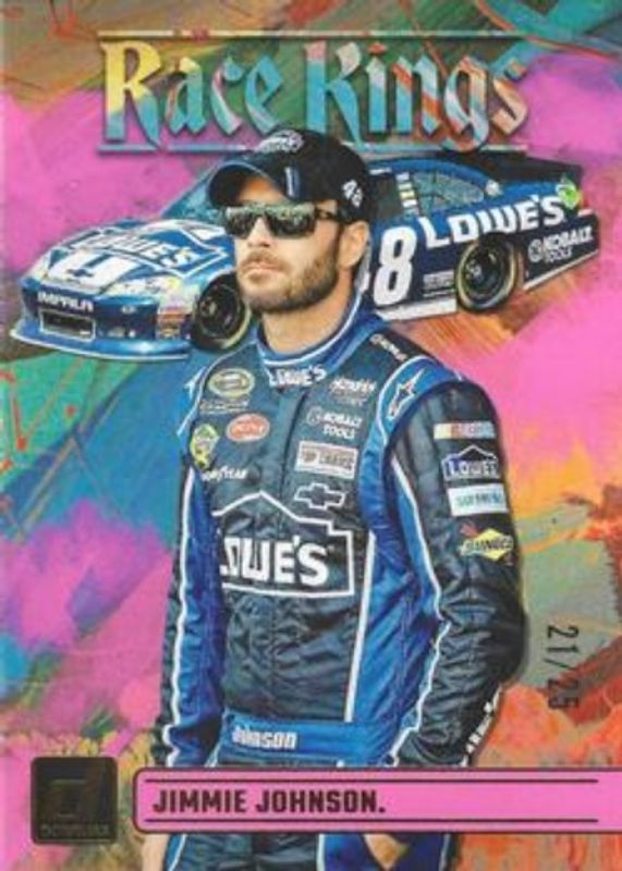 The Jimmie Johnson 2024 Donruss NASCAR #193 Pink /25 card is 1 of 128 Jimmie Johnson's card variations in the 2024 Donruss NASCAR set being tracked by Sports Card Investor, including #69 Base, #193 Base, #69 Optic, #193 Optic, and #193 Optic Black Pandora.