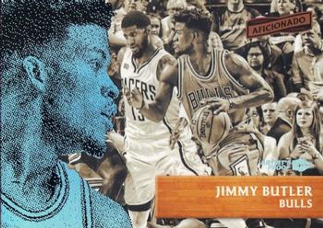 The Jimmy Butler 2016 Aficionado #1 Artist's Proof card is 1 of 14 Jimmy Butler's card variations in the 2016 Aficionado set being tracked by Sports Card Investor, including Base, Opening Night Preview Edition, Tip Off, Artist's Proof Red /99, and Artist's Proof Gold /1.