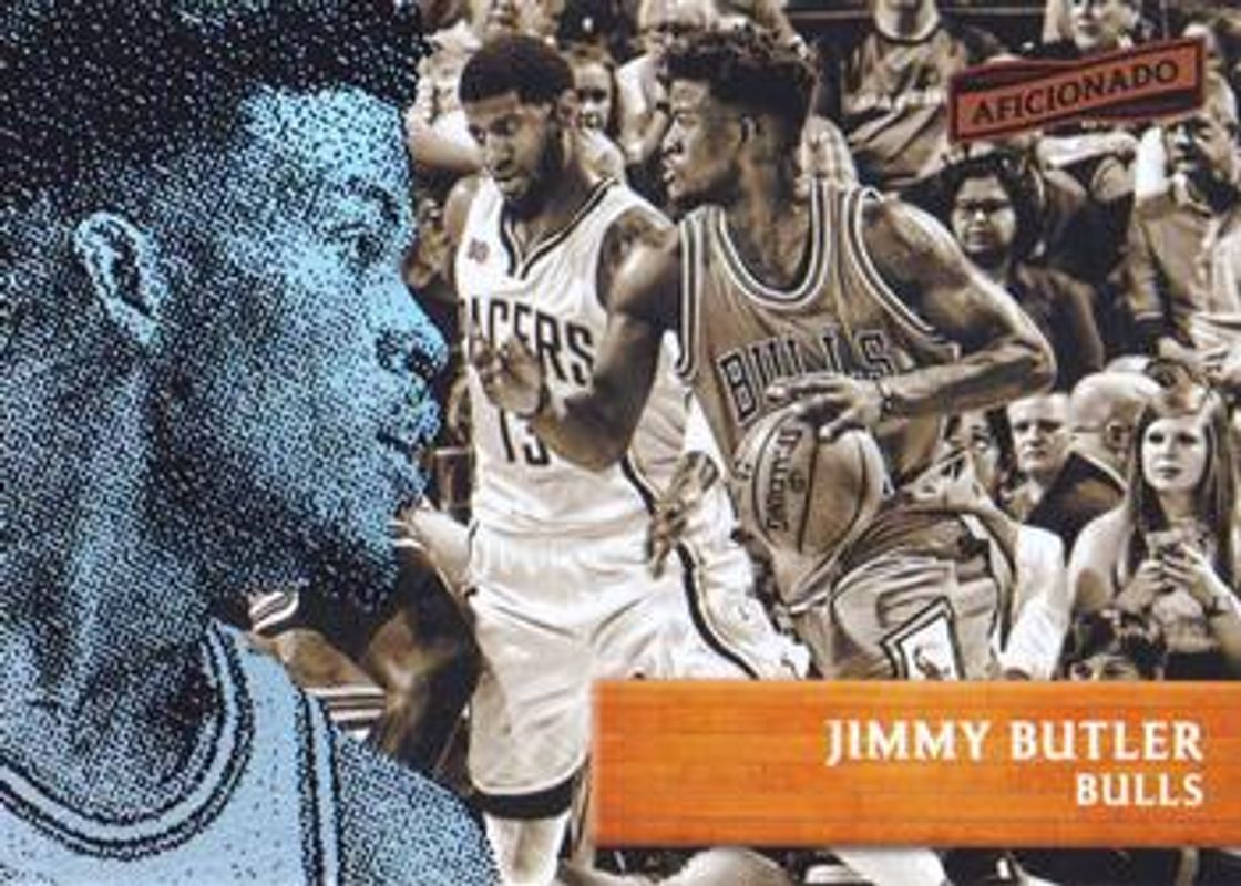 The Jimmy Butler 2016 Aficionado #1 Base card is 1 of 14 Jimmy Butler's card variations in the 2016 Aficionado set being tracked by Sports Card Investor, including Artist's Proof, Opening Night Preview Edition, Tip Off, Artist's Proof Red /99, and Artist's Proof Gold /1.