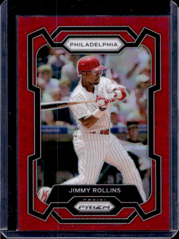 The Jimmy Rollins 2024 Prizm #87 Red /299 card is 1 of 30 Jimmy Rollins' card variations in the 2024 Prizm set being tracked by Sports Card Investor, including Base, Blue Ice, Green, Green Ice, and Pink Ice.