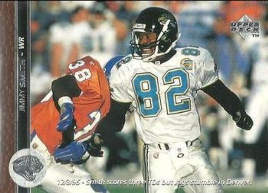 Jimmy Smith's Football cards are available in at least 68 sets. Jimmy Smith's biggest 7-day price movers are 1996 Upper Deck #283 Base, 1997 Upper Deck #177 Base, and 1997 Upper Deck Collector's Choice #TC41 Turf Champions.