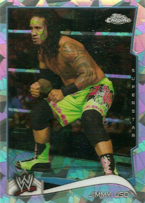 This card is 1 of 6 Jimmy Uso's card variations in the 2014 Topps Chrome WWE set being tracked by Sports Card Investor, including Base, Refractor, X-Fractor, Red Refractor /199, and Gold Refractor /50.