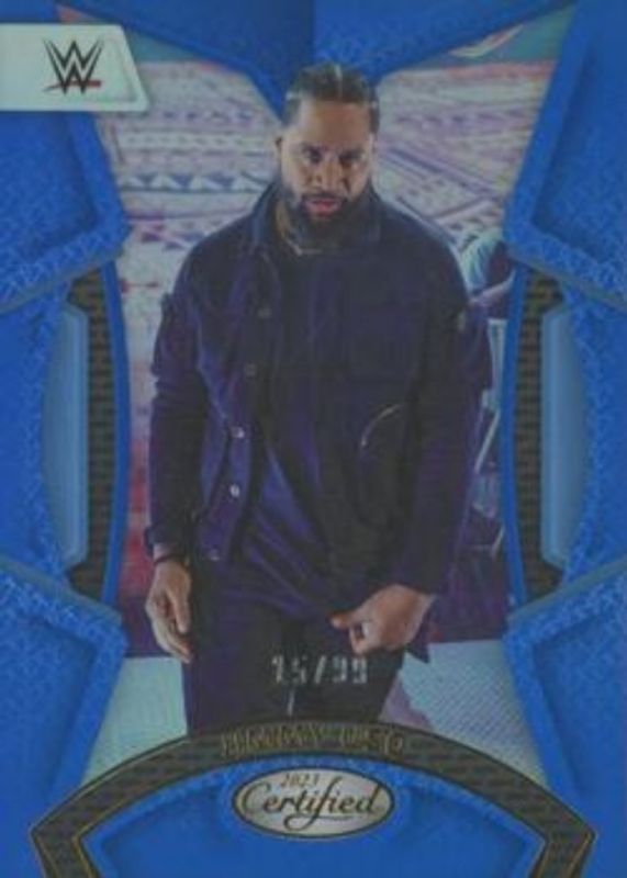 The Jimmy Uso 2023 Chronicles WWE #208 Blue /99 card is 1 of 64 Jimmy Uso's card variations in the 2023 Chronicles WWE set being tracked by Sports Card Investor, including #208 Base, #140 Base, #27 Base, #280 Base, and #332 Base.