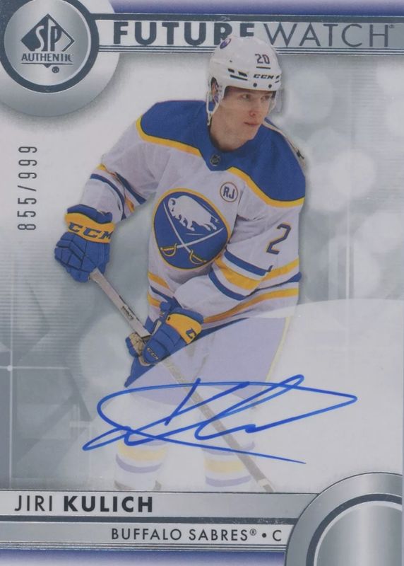 The Jiri Kulich 2023 SP Authentic #197 Future Watch Auto /999 Rookie card in Raw condition has moved up $5.80 (+22.1%) in the last 30 days and was last sold for $32.03 .