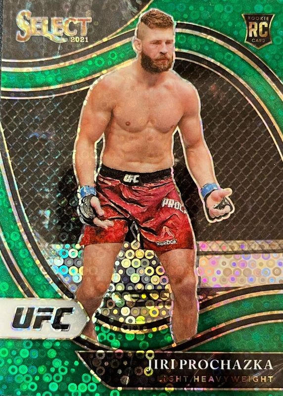 The Jiri Prochazka 2021 Select UFC #285 Octagonside Green Disco /5 Rookie card in Raw condition has not changed in price in the last 30 days and was last sold for $278.00 .