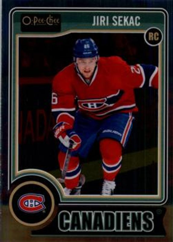 The Jiri Sekac 2014 O-Pee-Chee Platinum #184 Base card is 1 of 22 Jiri Sekac's card variations in the 2014 O-Pee-Chee Platinum set being tracked by Sports Card Investor, including Platinum Traxx, Rainbow, White Ice /199, Red Prism /135, and Blue Cube /65.