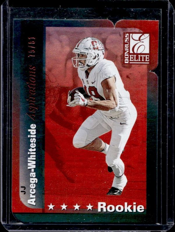 The JJ Arcega-Whiteside 2019 Elite #144 1999 Elite - Aspirations /88 Rookie card is 1 of 26 JJ Arcega-Whiteside's card variations in the 2019 Elite set being tracked by Sports Card Investor, including Green, Red /299, Purple /99, Orange /49, and Aspirations Die-Cut /24.
