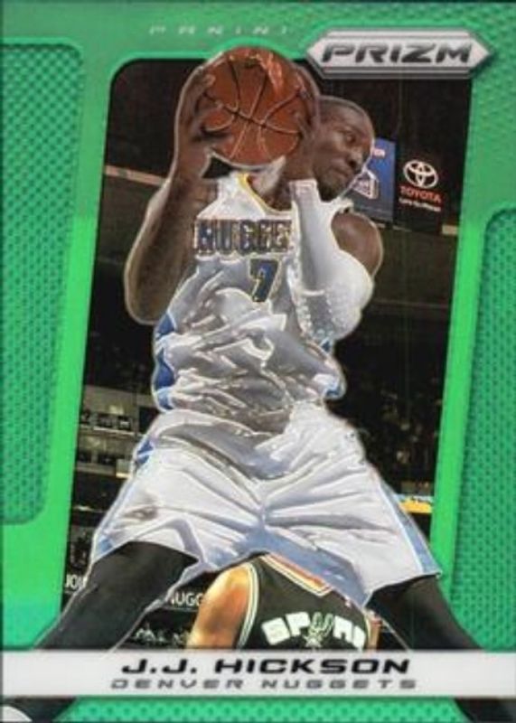 The JJ Hickson 2013 Prizm #31 Green card is 1 of 13 JJ Hickson's card variations in the 2013 Prizm set being tracked by Sports Card Investor, including Base, Blue, Red, Red White Blue Mosaic, and Silver.