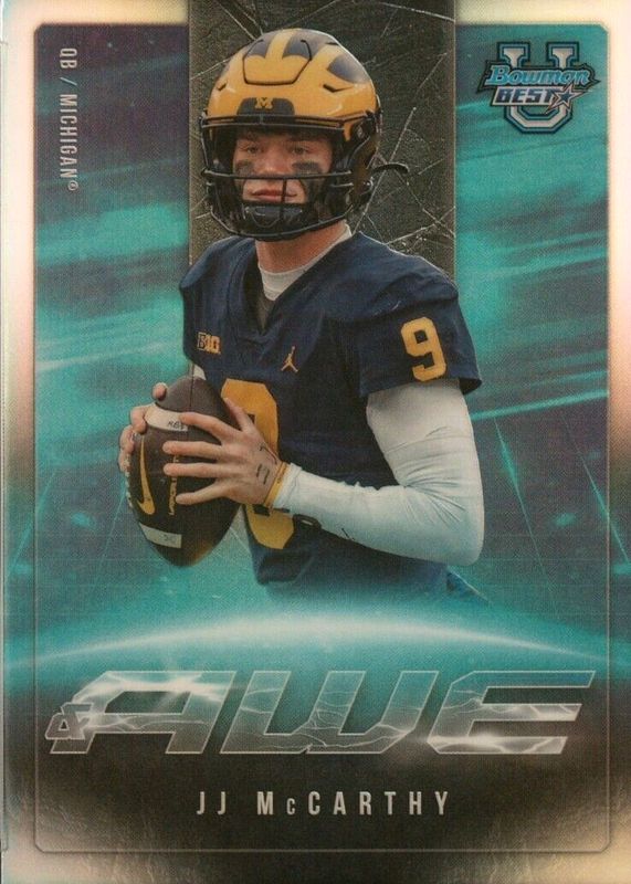 JJ McCarthy 2023 Bowman Best University #SA-3 Shock & Awe /(SSP) RAW Price Guide