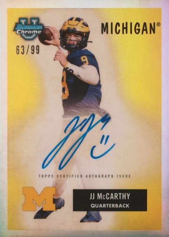 JJ McCarthy 2023 Bowman Chrome University 1955 Design Auto /99 Rookie Michigan