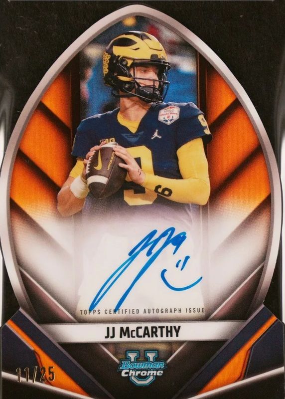 JJ McCarthy 2023 Bowman Chrome U Future Of Football Auto Orange /25 Michigan