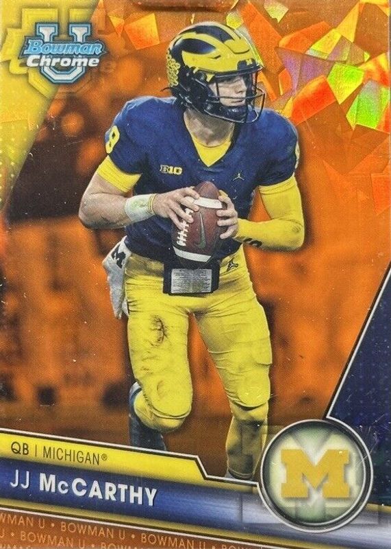 JJ MCCARTHY | 2023 Bowman Chrome U Sapphire Football | Orange Refractor RC /25