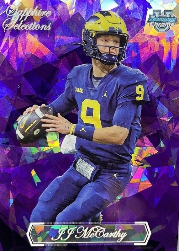 Best Prices Available For Sale of JJ McCarthy 2023 Bowman Chrome University Sapphire Edition #SS-8 Sapphire Selections - Purple /10