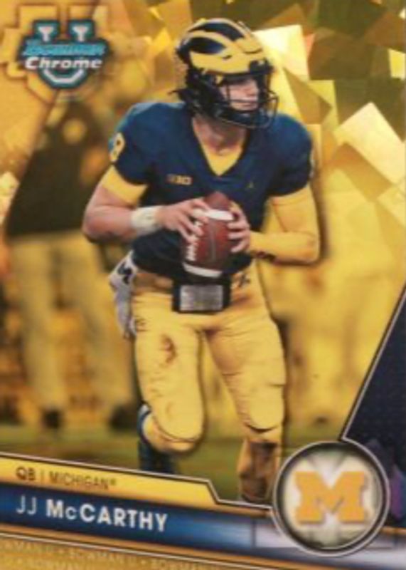 JJ McCarthy 2023 Bowman Chrome University Sapphire Yellow /75 Michigan Vikings