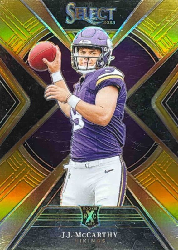 This card is 1 of 4 JJ McCarthy's card variations in the 2023 Select set being tracked by Sports Card Investor, including XRC Prizm, XRC Prizm - Tie-Dye /25, and XRC Prizm - Black /1.