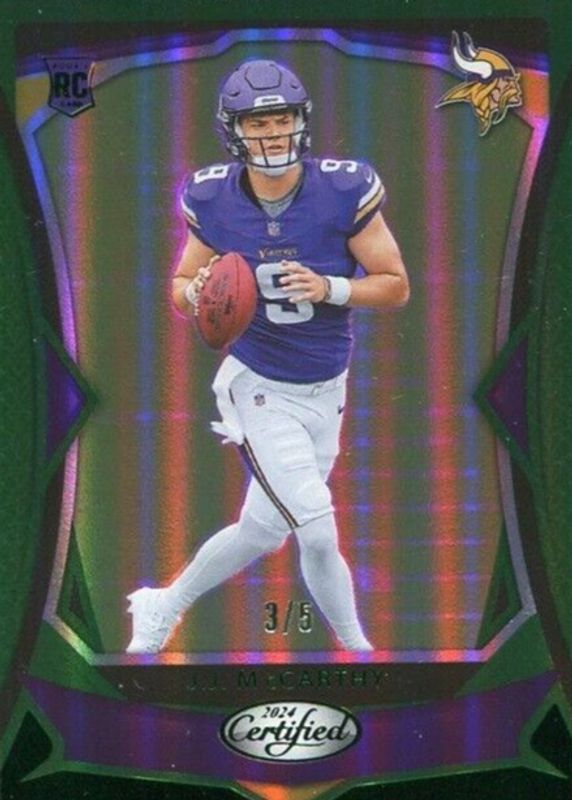 JJ McCarthy 2024 Certified #108 Mirror Green /5 Rookie RAW Price Guide
