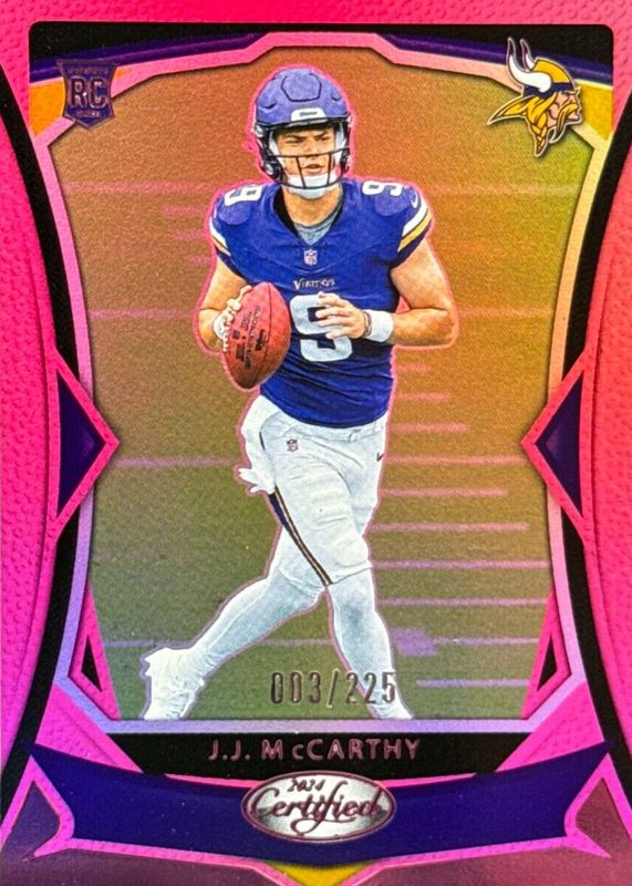 2024 Panini Certified J.J. McCarthy Pink Mirror /225 RC #108 Minnesota Vikings