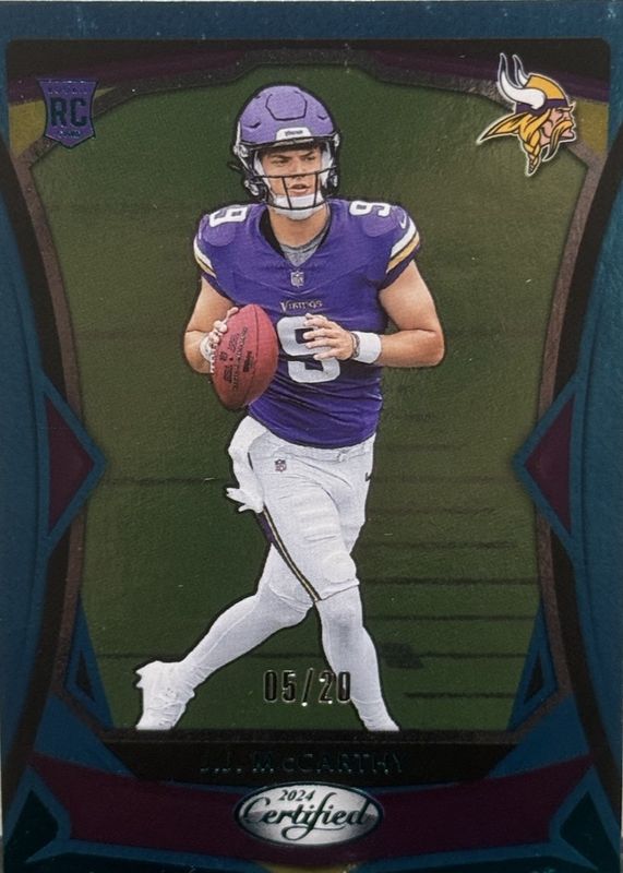 JJ McCarthy 2024 Certified #108 Mirror Teal FOTL /20 Rookie RAW Price Guide