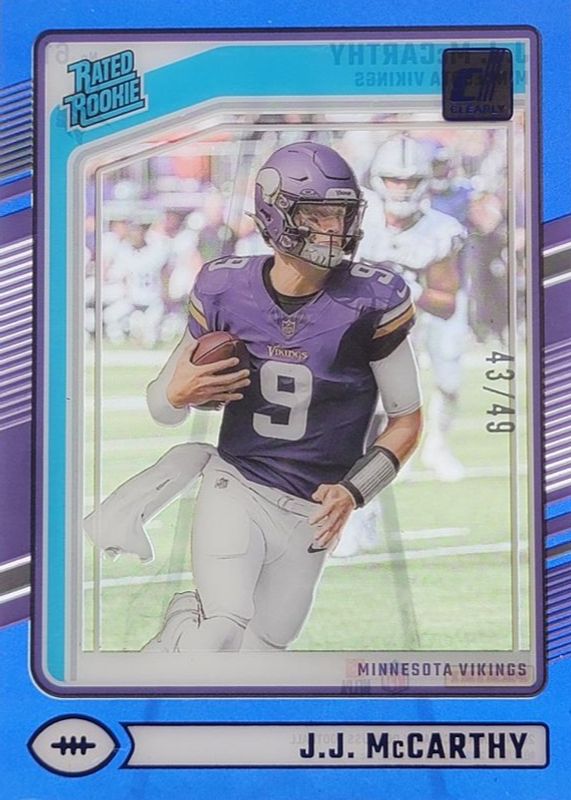 2024 Donruss Clearly JJ MCCARTHY Blue #43/49 Rookie RC #61 Vikings