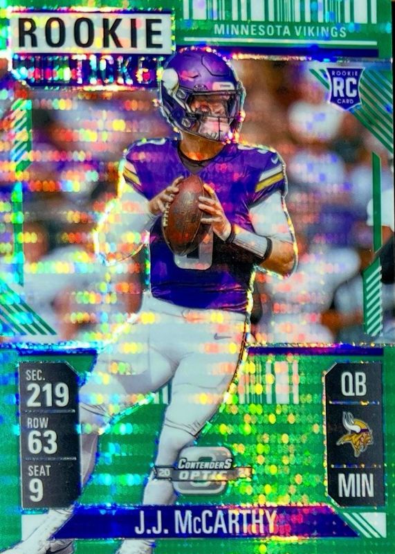 JJ McCarthy 2024 Contenders Optic #71 Green Pulsar /49 Rookie RAW Price Guide