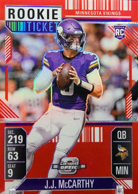 2024 Contenders Optic JJ McCarthy Rookie Ticket #71 Red Prizm (RC) 33/199 - RARE