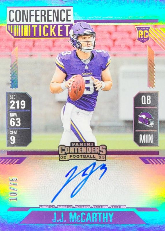 2024 Contenders JJ McCarthy Rookie Ticket Variation Auto Conference RC #/75