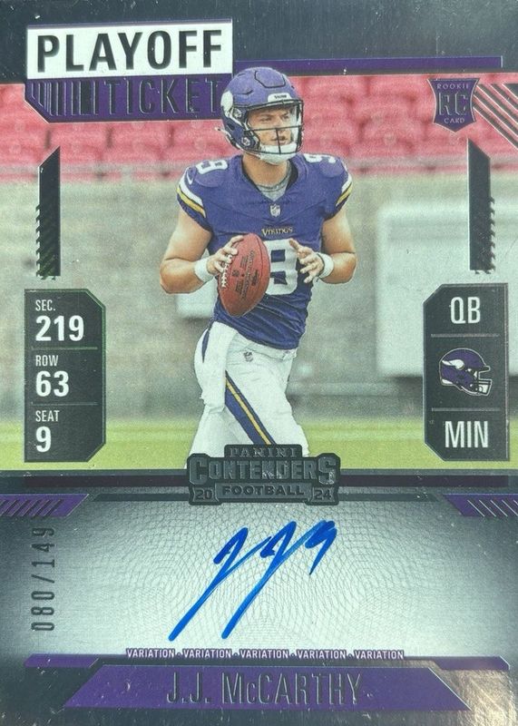 2024 PANINI CONTENDERS J.J. MCCARTHY AUTO PLAYOFF TICKET VARIATION /149 VIKINGS
