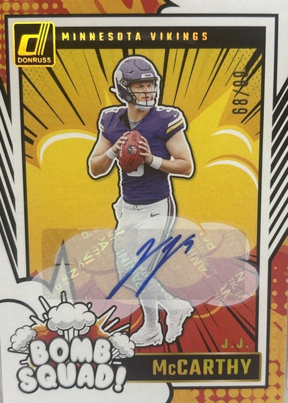 2024 J.J. McCarthy Donruss Bomb Squad Rookie Auto Autograph 40/99 Vikings RC JJ