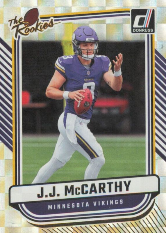 The JJ McCarthy 2024 Donruss #TR-1 The Rookies card in Raw condition has moved up $0.39 (+14.2%) in the last 30 days and was last sold for $3.14 .